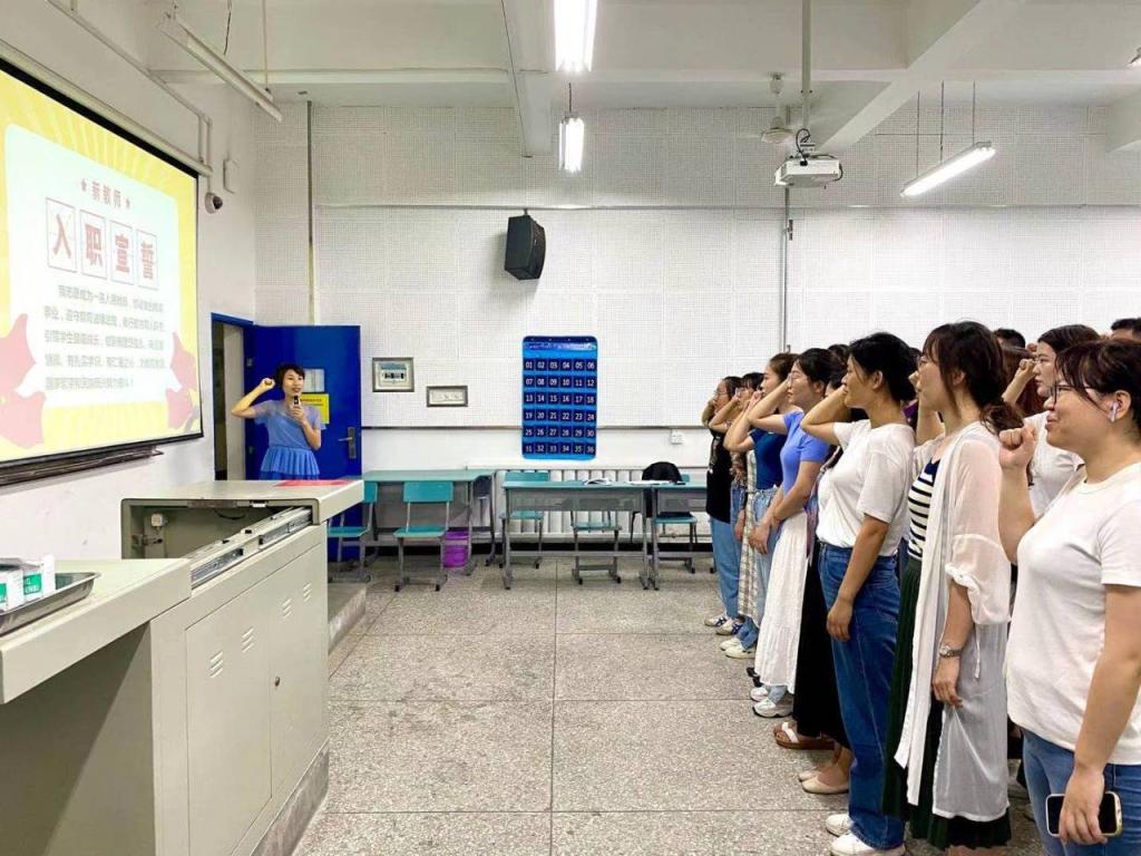 在金威威的领誓下,全体新教师庄严地宣读了入职誓词。青年教师表示,强国有我,请党放心,作为一名新入职教师一定会牢记教书育人的初心和使命,承担起培养担当民族复兴大业时代新人的重任,既做学生的“经师”,更要做学生的“人师”。